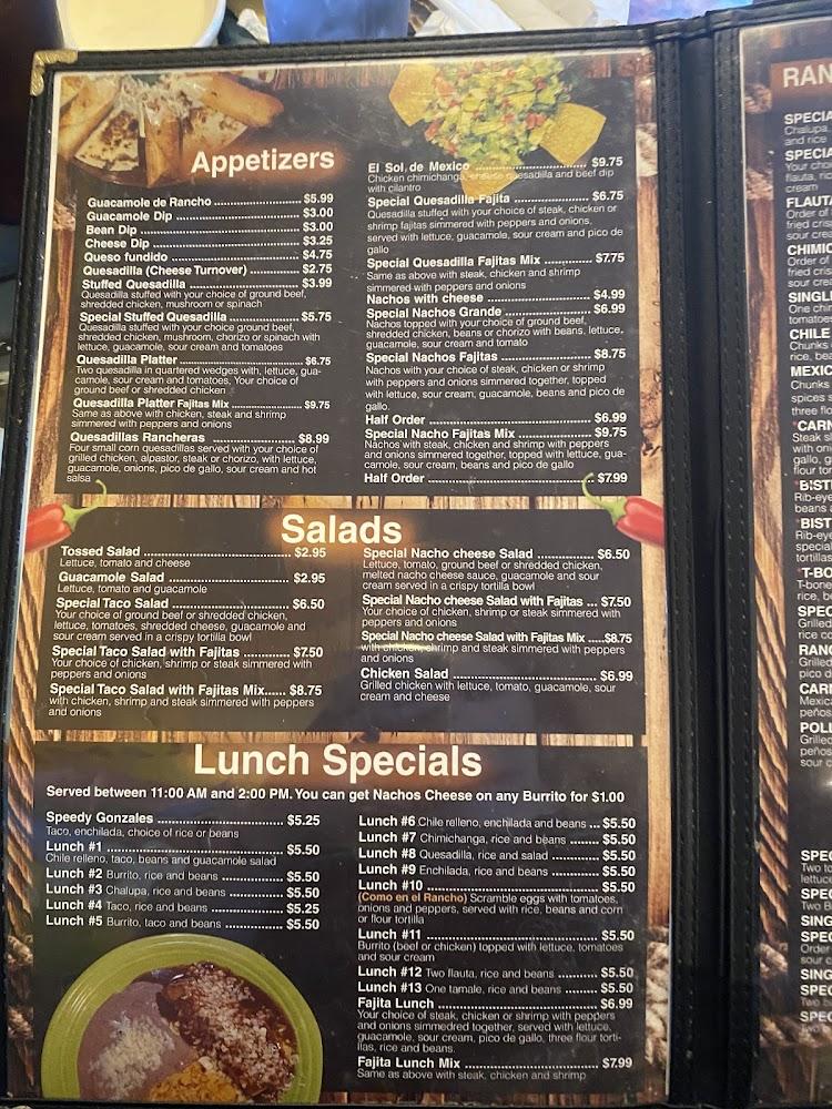 Rancho Grande's menu shines with traditional Mexican flavors. Famed for its burritos, enchiladas, and sizzling fajitas, it offers a robust selection. Each dish is crafted using fresh ingredients and time-honored recipes.